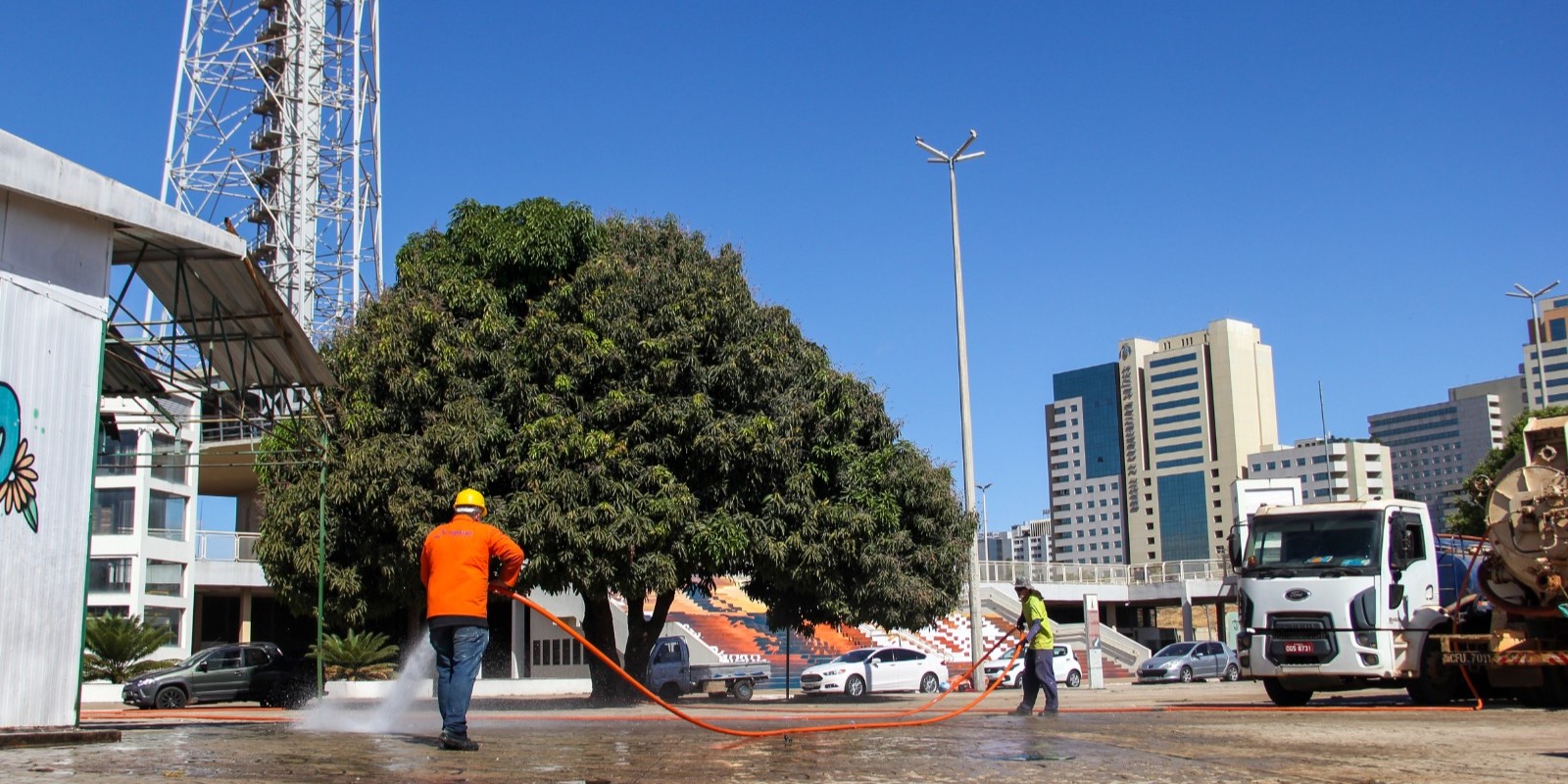 A Companhia Urbanizadora da Nova Capital do Brasil (Novacap) realiza a limpeza das áreas comuns da Feira de Artesanato da Torre de TV. A ação começou na terça (27) e segue até esta sexta-feira (30), para que o espaço esteja preparado para receber trabalhadores e frequentadores no fim de semana.