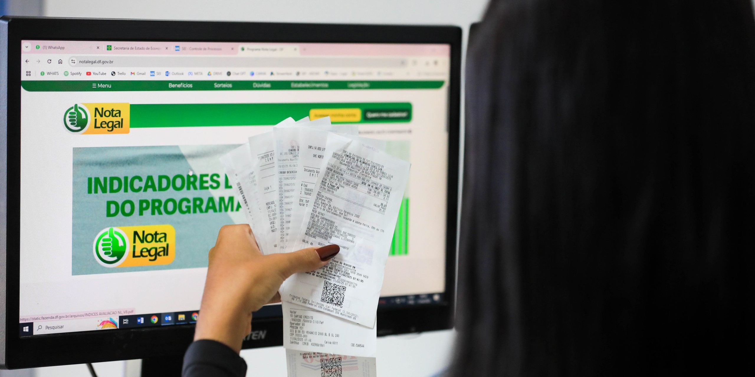 Para indicar a conta bancária para recebimento dos valores, o contribuinte deve acessar este site, fazer login na área restrita e preencher os dados solicitados. A Seec-DF também envia e-mails alertando sobre a necessidade da indicação, e informa que a consulta da premiação pode ser feita diretamente no portal do Nota Legal. Mas, fique atento: a Secretaria não utiliza o WhatsApp para esse tipo de comunicação.