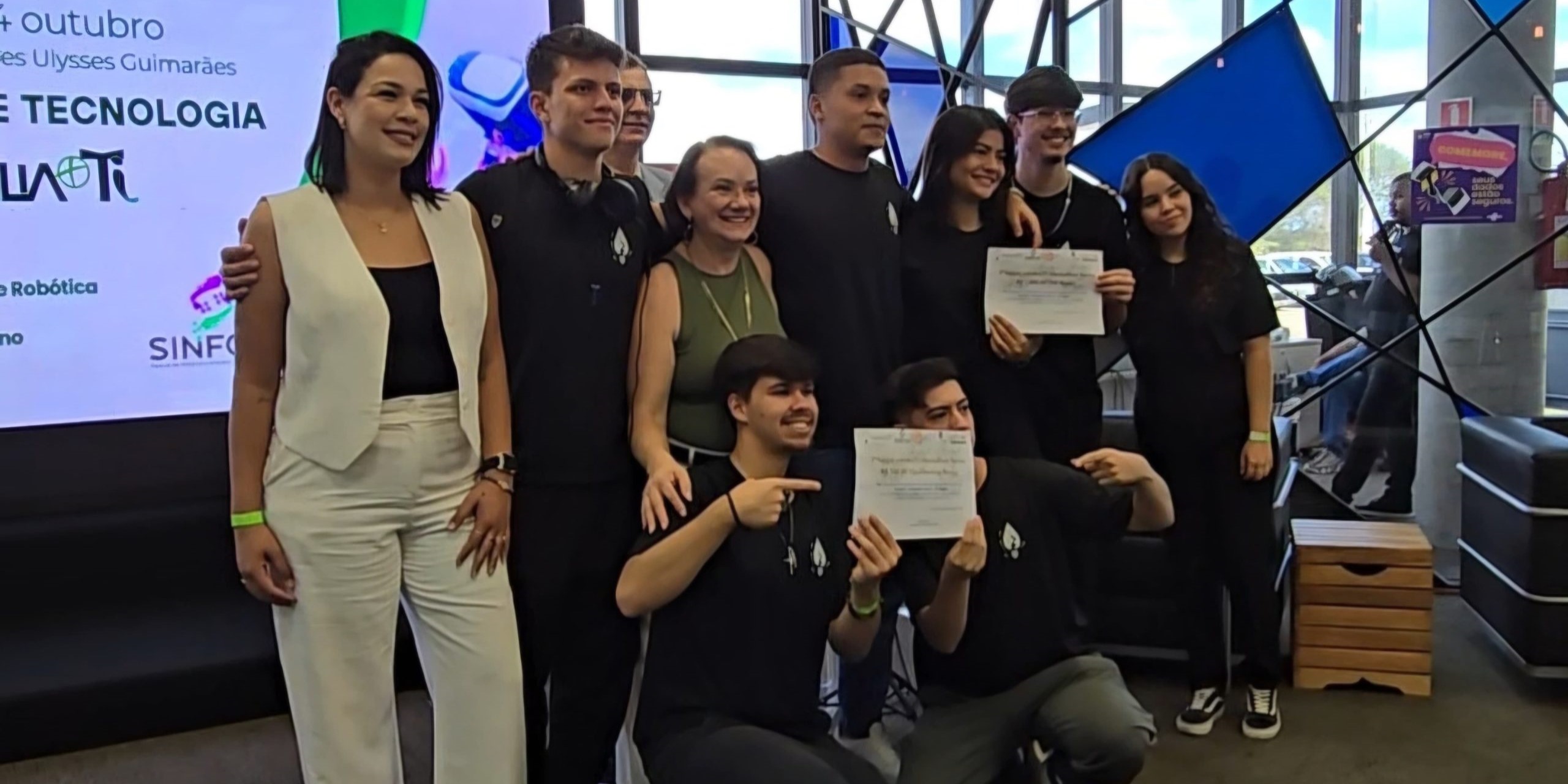 O primeiro lugar foi de um grupo de estudantes da Universidade Católica de Brasília (UCB) – Ana Valentina Araújo Martins, Pedro Henrique Manzoni, Eduarda Bernadini e Dhavi Pinheiro -, cuja solução inovadora impressionou o júri pela originalidade e viabilidade de implementação. “Este foi o primeiro hackathon de que participamos, e sair daqui com o primeiro lugar é uma conquista incrível”, comemorou Ana Valentina. A Cria Incubator, uma startup do DF, conquistou o segundo e o terceiro lugares.