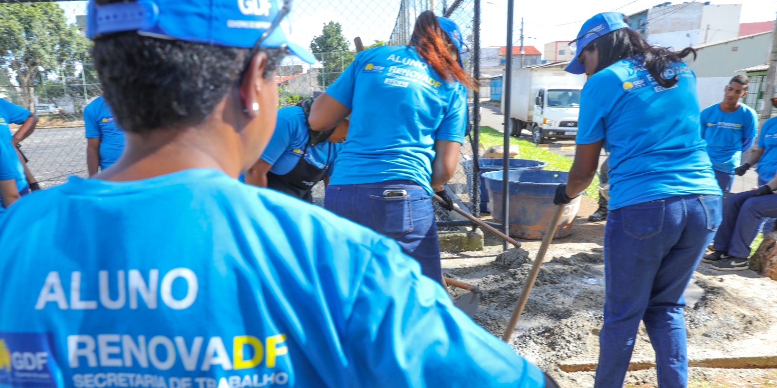 Os alunos do RenovaDF recebem capacitação profissional, com noção básica na área de construção civil e aulas de forma presencial. Enquanto se qualificam, os próprios alunos recuperam os espaços públicos de nossa cidade. Eles recebem kit uniforme, com camiseta, bota, capa de chuva, garrafa d’água, boné, equipamento de proteção individual, lanche e, mais, Bolsa Benefício no valor de um salário mínimo, além de auxílio transporte e seguro contra acidentes pessoais.