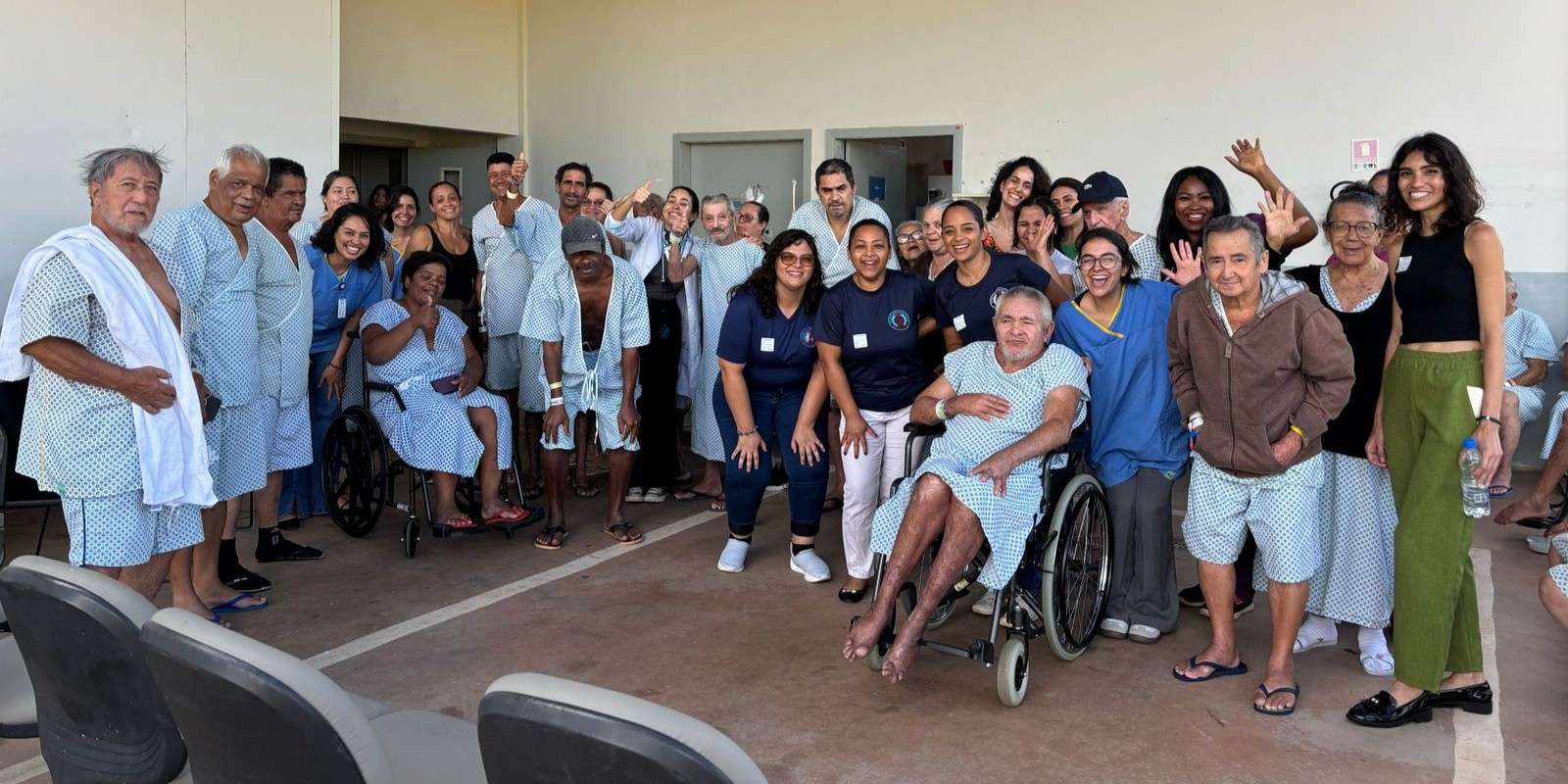 Aldenora Bezerra Dantas, acompanhante do paciente Francisco Arlindo Dantas — internado desde 14 de março com pressão alta e pré-diabetes — também se emocionou com a experiência. “Isso aqui é uma terapia. Para nós que estamos acompanhando e para eles que estão internados, é um momento de amor. Nota dez pra tudo. Pena que é só uma vez por mês, podia ser mais. Aqui a gente sente cuidado, carinho.”