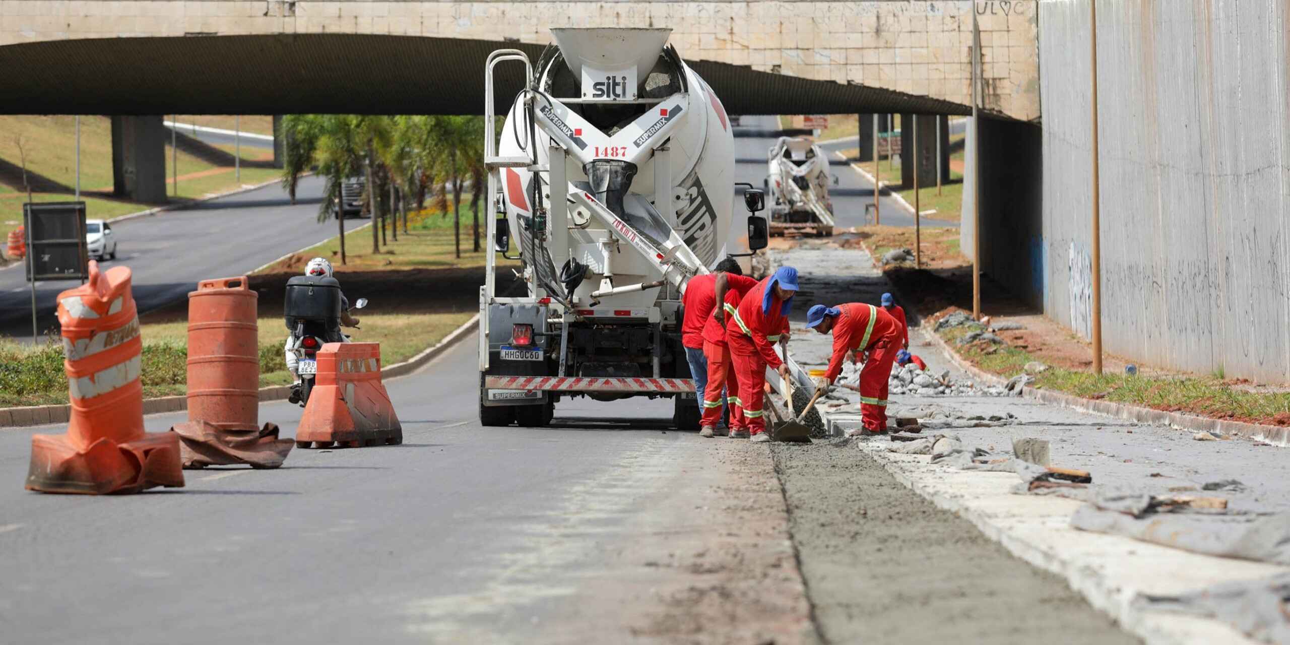 O serviço é feito na 502 Sul, próximo ao viaduto do Eixo Monumental. Cerca de 11 km de corredor em pavimento rígido já foram entregues na avenida