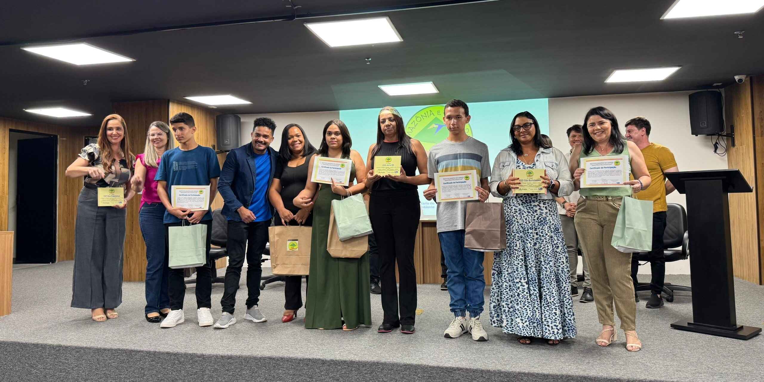 Os vencedores do concurso receberam certificados e prêmios especiais. Além dos estudantes, os professores responsáveis pela orientação das redações também foram homenageados, reforçando o papel crucial dos educadores na formação de cidadãos conscientes e engajados com as questões ambientais.