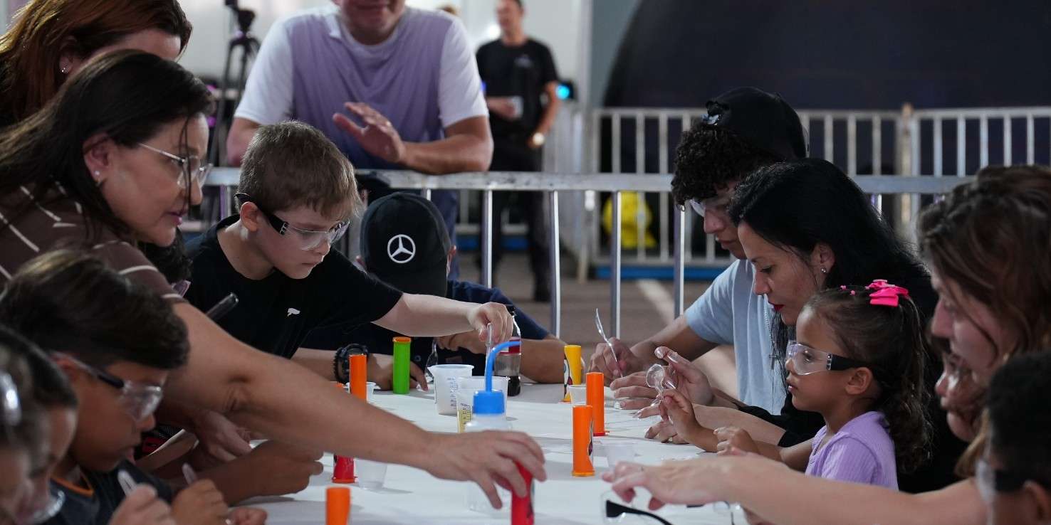 A programação inclui ainda o Desafio Espacial, o Domo Planetário, a Arena Gamer e as atividades conduzidas pelo professor Umberto Mannarino — que tem um canal no YouTube onde leciona Ciências e Matemática —, com palestras e experiências interativas que ampliam as possibilidades de contato com as ciências e tecnologias.