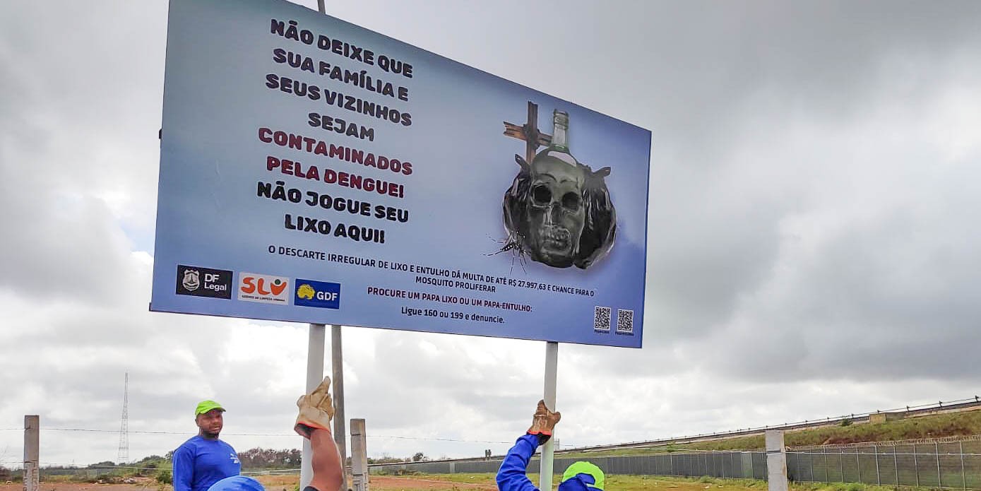 O Governo do Distrito Federal (GDF) iniciou, nesta sexta-feira (3), mais uma ação de combate à dengue, instalando as primeiras 25 placas informativas em pontos de descarte irregular de lixo e entulho mapeados pela fiscalização da Secretaria de Proteção da Ordem Urbanística (DF Legal).