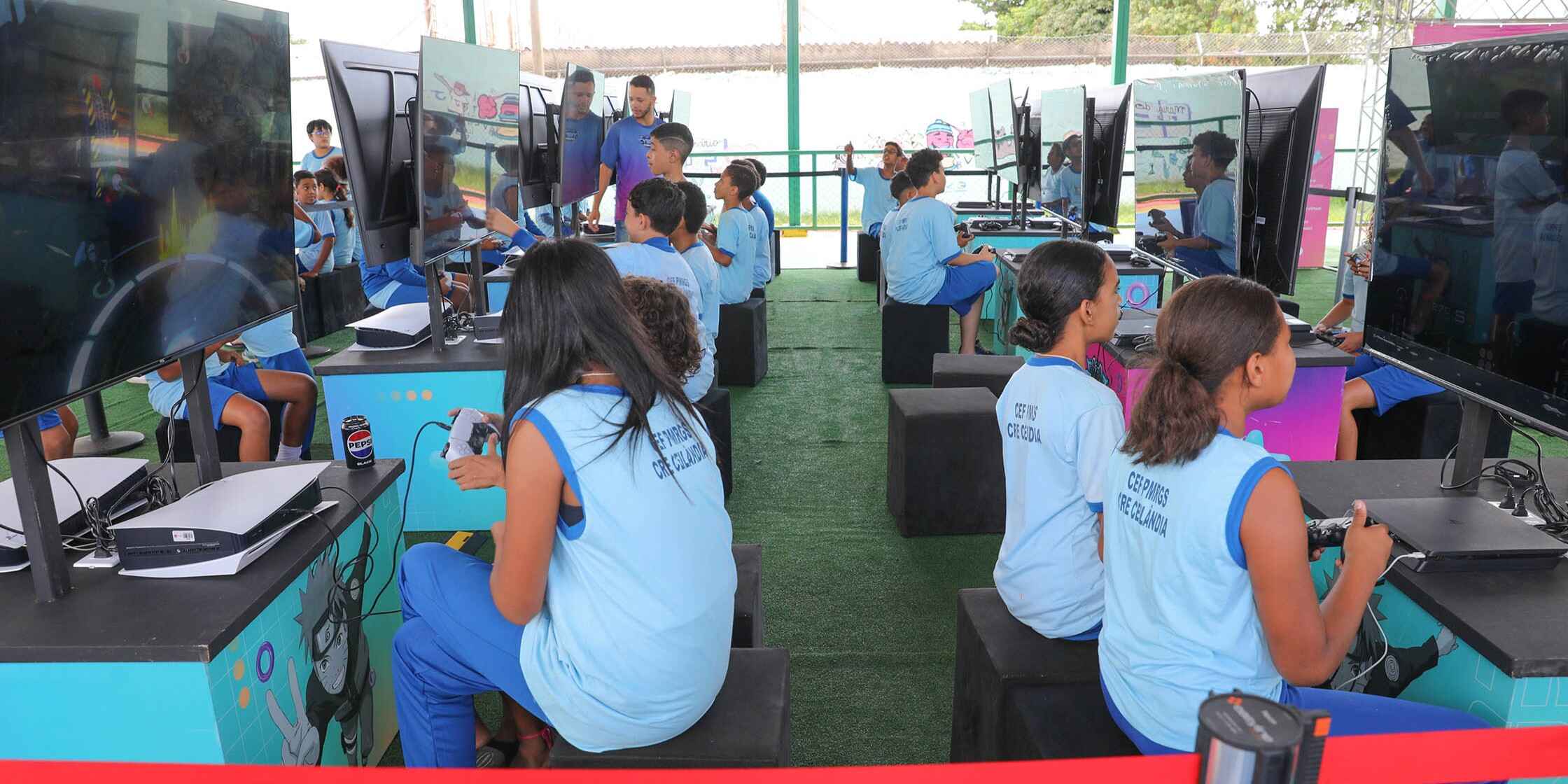 Os estudantes do Centro de Ensino Fundamental Professora Maria do Rosário Gondim da Silva (CEF PMRGS), em Ceilândia, tiveram um dia especial nesta sexta-feira (28). A unidade foi uma das escolhidas para receber a Cyber Arena, iniciativa fruto de parceria entre a Secretaria de Esporte e Lazer (SEL-DF) e o Instituto Inside Brasil.