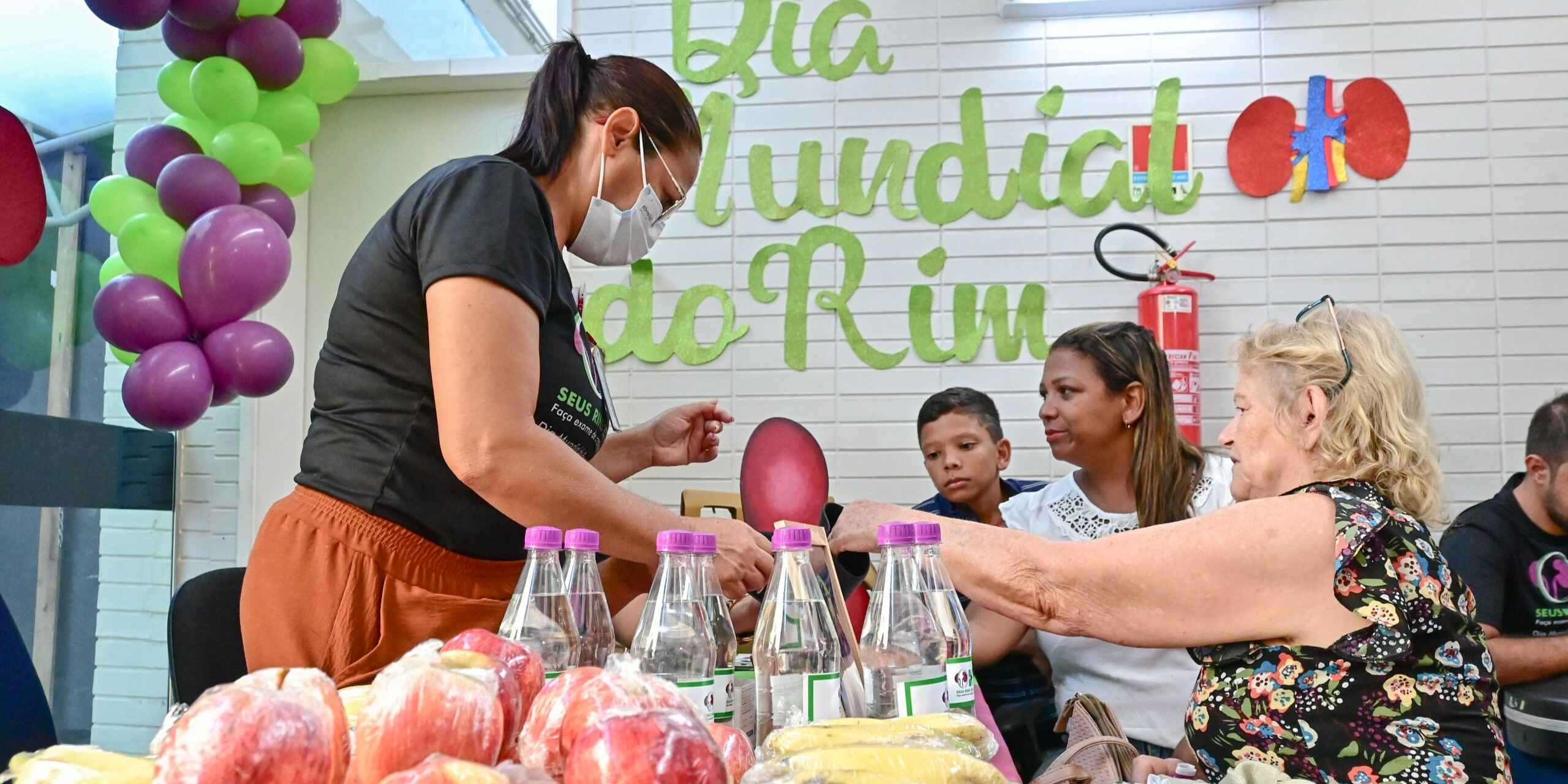 A iniciativa incluiu a entrega de garrafas de água e frutas como bananas e maçãs para os pacientes, além de panfletos informativos com curiosidades sobre a saúde dos rins.