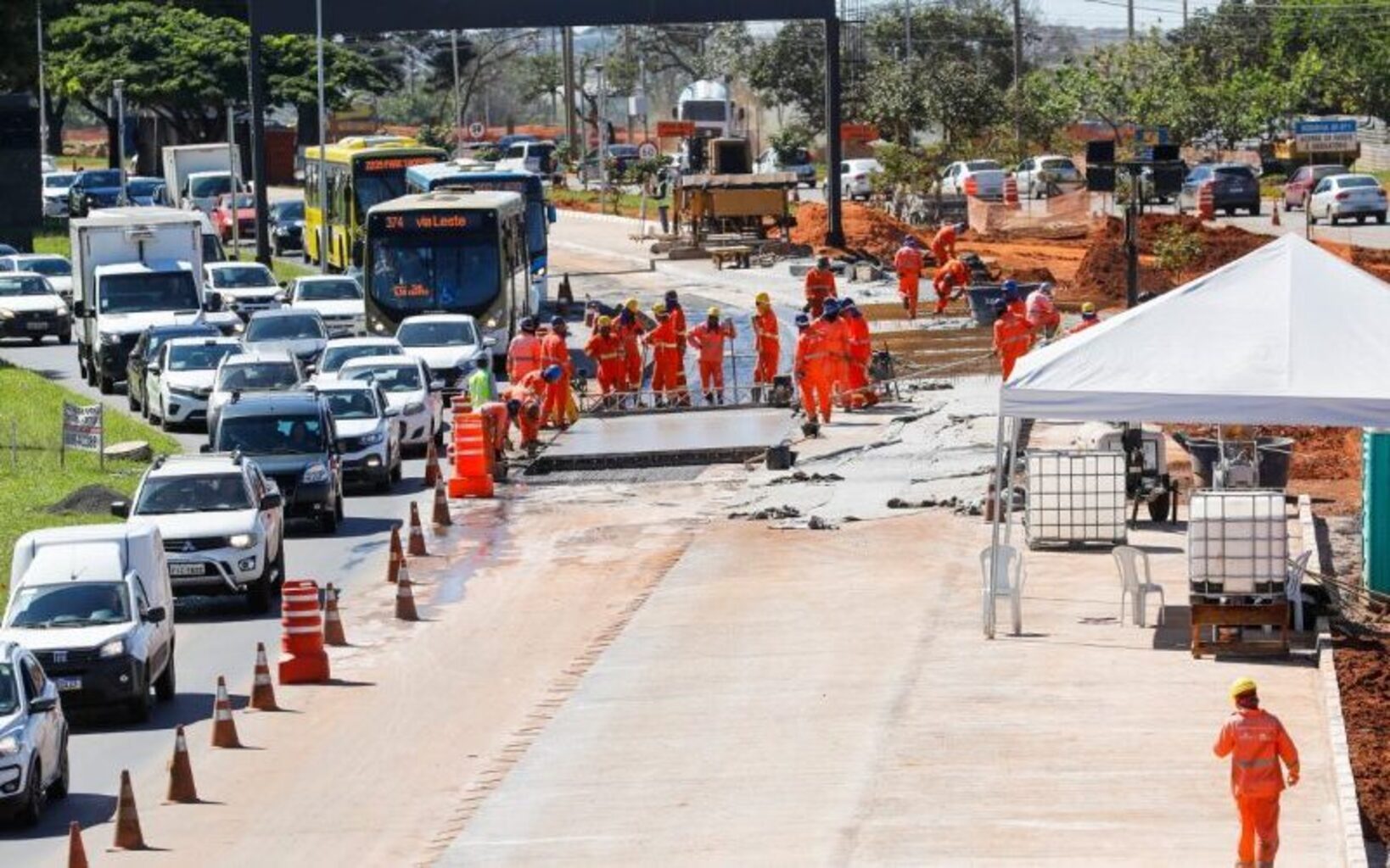 Um investimento de R$ 160 milhões tem transformado a mobilidade urbana na Estrada Parque Indústrias Gráficas (Epig). Em obras desde 2023, a via passa por mudanças que, ao final, vão beneficiar cerca de 30 mil motoristas por dia. Um projeto ambicioso que prevê corredor exclusivo para ônibus, pavimento de concreto, passagem de pedestres, ciclovia, calçadas e viadutos, além de novo acesso ao Parque da Cidade. Por questões de logística e segurança, os serviços foram divididos em seis trechos, gerando aproximadamente 1.200 empregos diretos e indiretos.