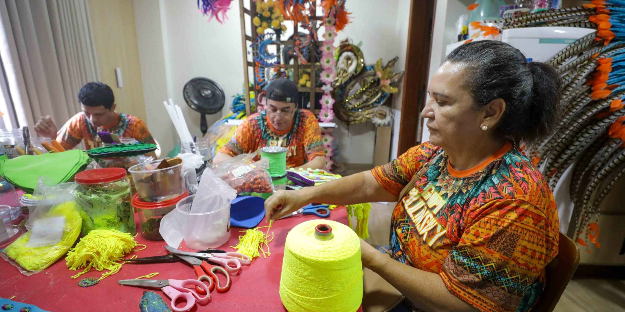 A oficina de indumentárias reúne desde costureiros e artesãos a jovens e adolescentes que não têm experiência na confecção de vestuário. O workshop ocorre de segunda a sexta-feira, e totaliza 30 participantes. “Com essa capacitação, conseguimos formar nova mão de obra para os próximos festivais e outros carnavais. Nossos alunos saem especializados, tendo criado as próprias peças, prontos para outros eventos”, frisa o coordenador da oficina, Ronney Cerutti.