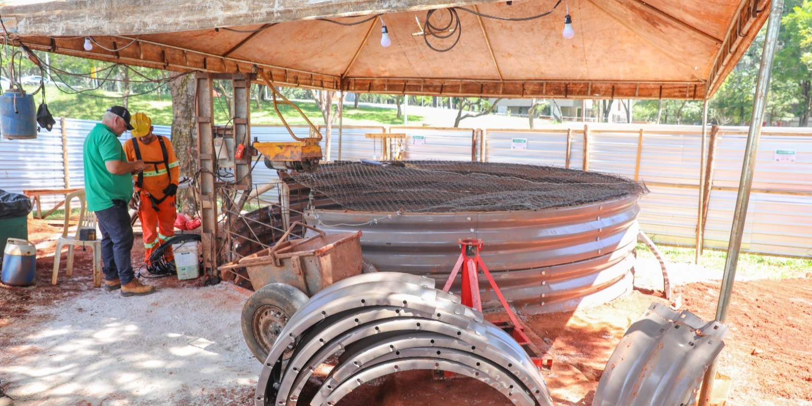 “Os túneis direcionados à saída da bacia de detenção já estão com tampa e escadas. Estamos com 80% dos PVs totalmente prontos”, afirma o diretor-técnico da Agência de Desenvolvimento do Distrito Federal (Terracap), Hamilton Lourenço Filho.