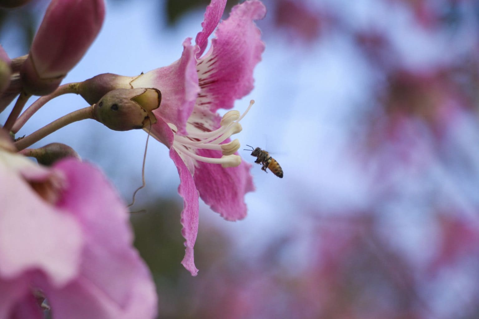 Segundo Viana, cada paineira chega até 30 metros de altura, sendo que o tronco pode alcançar de 80 a 120 cm de diâmetro. O tempo de desenvolvimento completo varia de 15 a 20 anos. “São árvores de grande porte e que costumam ser confundidas com ipês. O tronco é mais grosso do que o de outras espécies, com uma parte arredondada semelhante a uma barriga”, comenta. “As árvores florescem em momentos diferentes. Pode acontecer de algumas terem flores no final de dezembro ou janeiro, mas o comum mesmo é a partir de fevereiro”, explica.