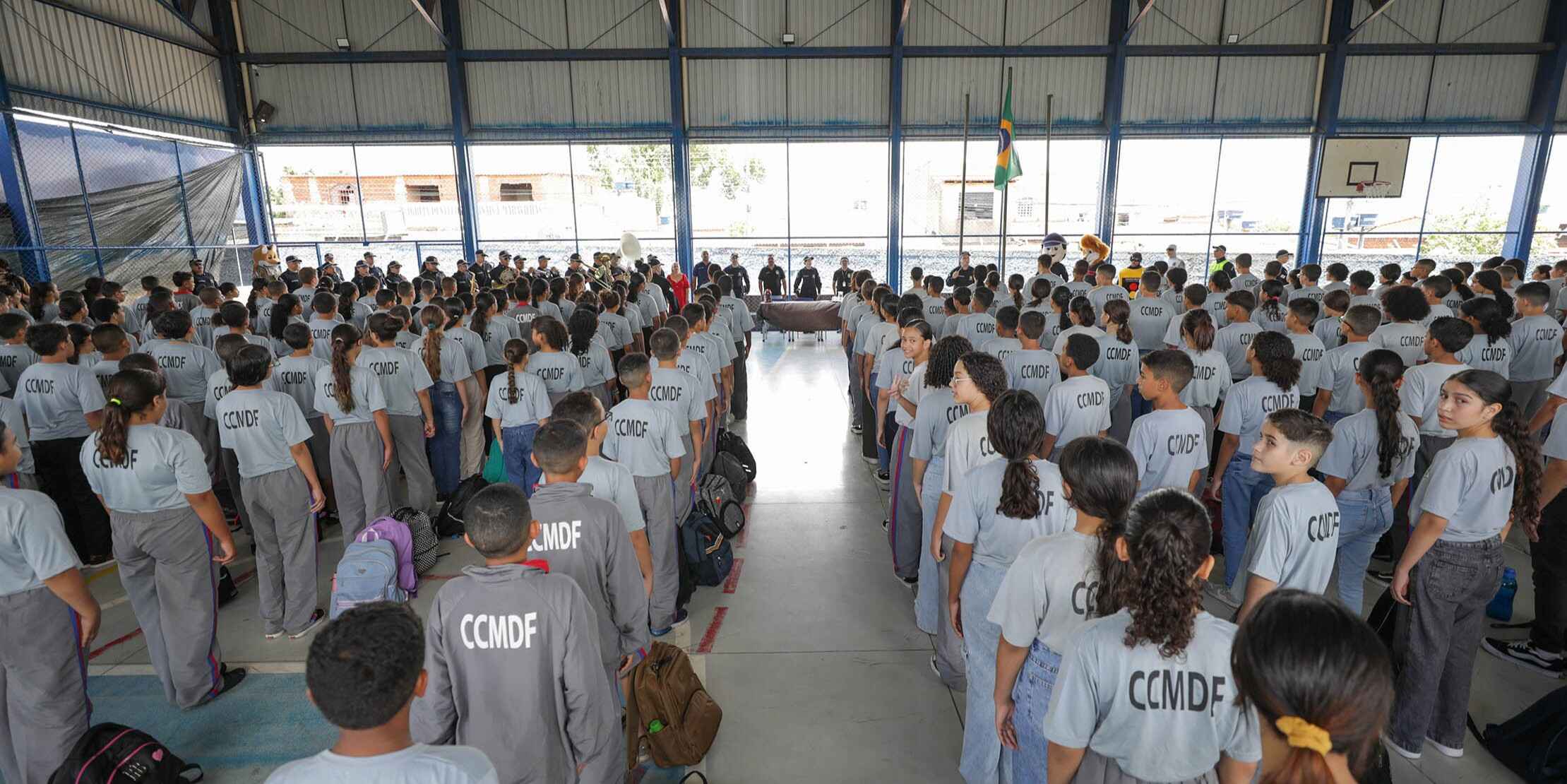 Estudantes do colégio cívico-militar CED 308 do Recanto das Emas retornaram às aulas com entusiasmo, sendo recepcionados por personagens icônicos da Polícia Militar do Distrito Federal (PMDF), como o Leão Daren e o sargento Valente. A ação do Programa Educacional de Resistência às Drogas e à Violência (Proerd), acompanhada por palestras de combate ao bullying e outros temas, integra o cronograma plurianual do batalhão escolar, que promove campanhas educativas em diversas escolas do DF nesta semana.