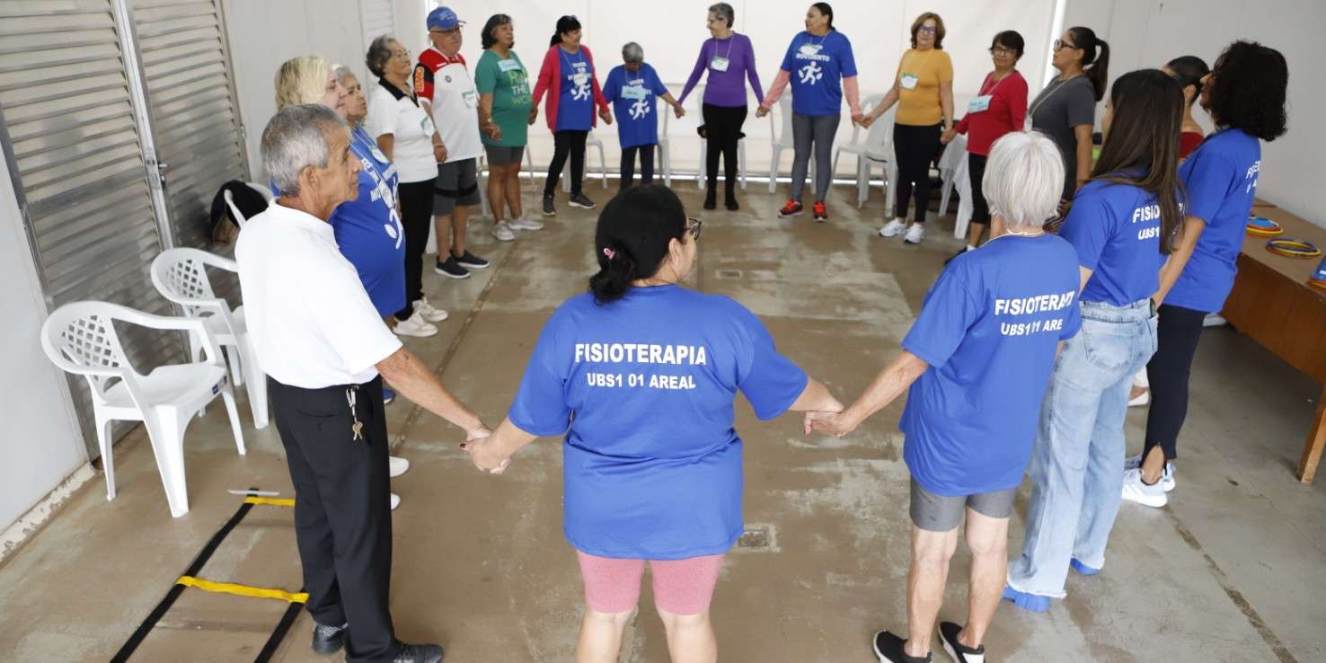 Para reduzir esse cenário, as unidades básicas de saúde (UBSs) promovem circuitos multissensoriais de prevenção de quedas, com metodologias próprias que estimulam força, cognição e equilíbrio de pessoas idosas. Na UBS 1 do Areal, o circuito é realizado toda terça-feira, às 8h, com a participação de 20 idosos, em média. A atividade inclui práticas corporais funcionais, estímulos de atenção e memória. Além disso, os participantes têm acesso a um canal no YouTube, criado pelos próprios profissionais, para que os participantes mantenham a rotina ativa em casa.